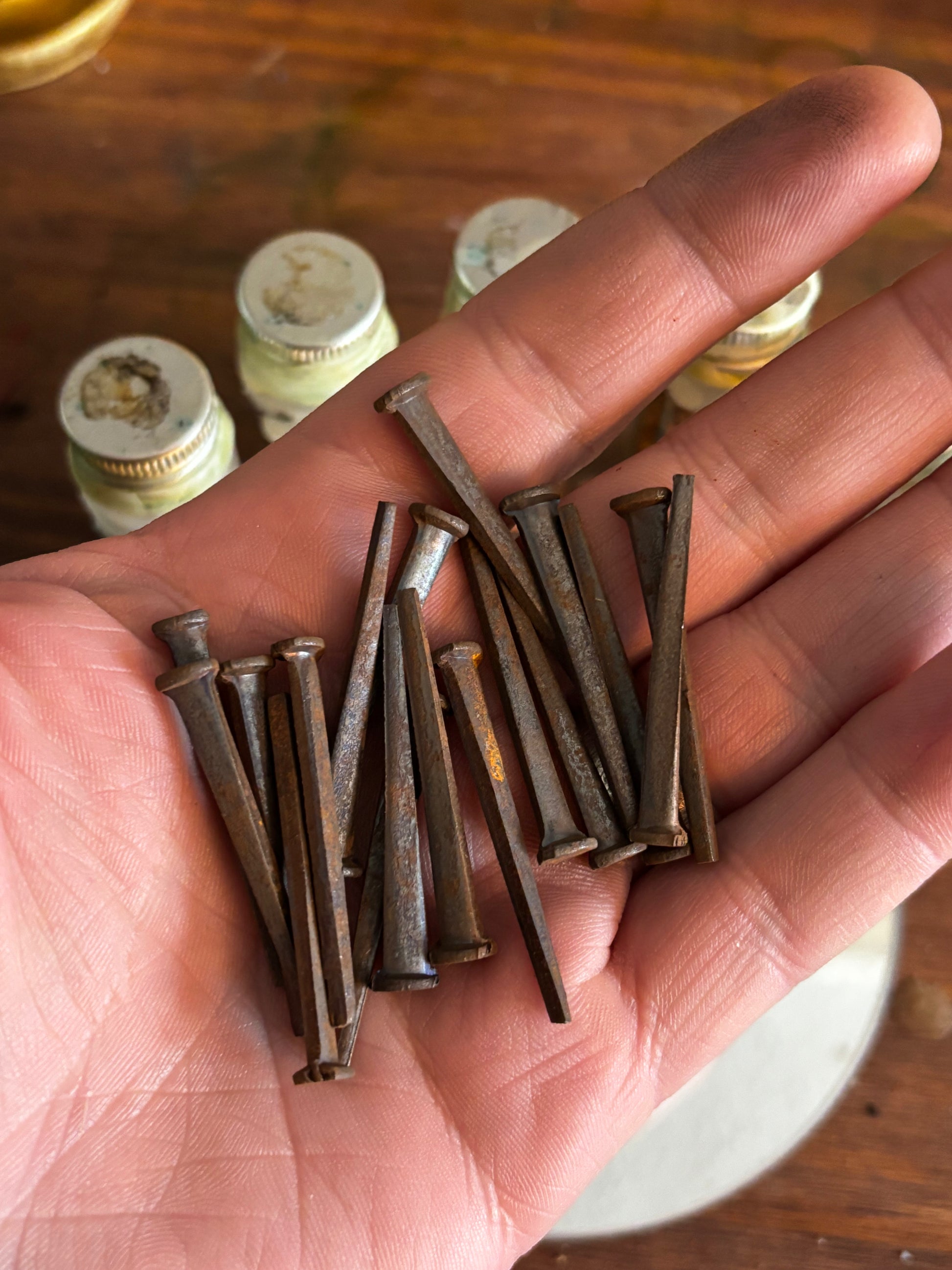 This batch of nails were fixed with herbs custom selected and awakened for this specific purpose and used in conjunction with a jar of graveyard dirt from a secret pioneer cemetery in the front range of the Rocky Mountains. Each jar is sealed with wax and contains 10 nails in herbs.